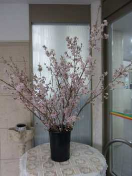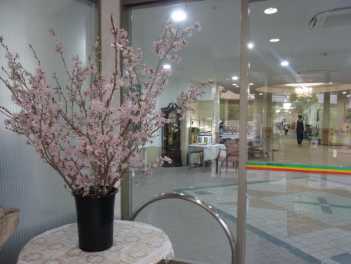 当館のロビー入口にも、桜が花をつけています。