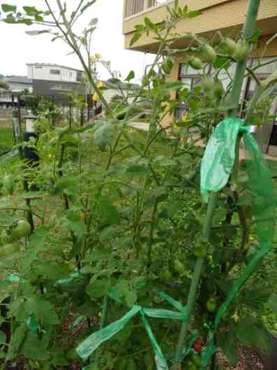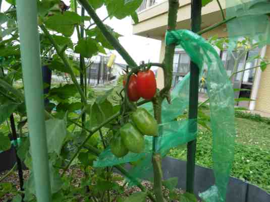 トマトは背がぐんと高くなって、どんどん実がなりはじめました!