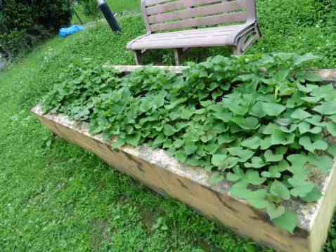 さつまいもは気づいたら葉っぱだらけに…(笑)