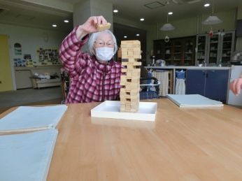 ジェンガには精神を全集中‼ドキドキハラハラにも動じません。