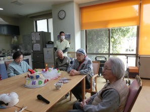 お誕生日会では、お祝い言葉を頂くと少し照れながらも喜ばれていました。