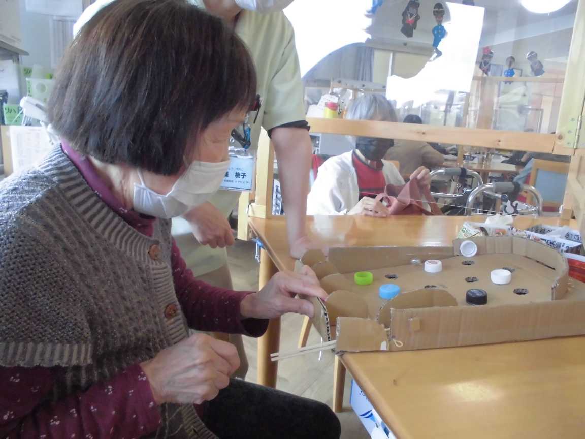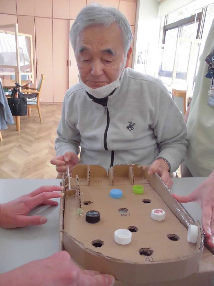 ブログをご覧になっている皆様こんにちは♪ 今回のブログではレクリエーションの様子をご紹介させていただきます。 アケソニア デイケアでは隔週でアケソニア選手権を開催しております。 午後のおやつ後から帰りの送迎までの時間にその日ご利用のゲスト様全体でのゲームです。 選手権は曜日対抗で競うルールです。 スタッフが考えた頭を使うゲームや体を使ってのゲームをしています。 その準備でスタッフお手製の道具も作成し(写真はスタッフが徹夜(笑)で作ったピンボールや亀です)ゲームをしています。 スタッフが作るのでちょっとしたいじわるで難易度をあげています(笑) 一週間に何回かご利用の方は前のご自身の記録を更新!という方もいらっしゃいます。 帰る前に皆さんで参加できるので盛り上がっております♪