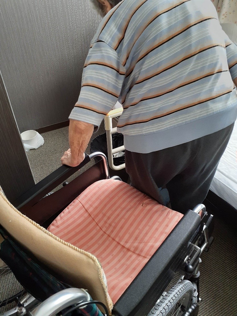 こんにちは。リハビリでは、訪問リハビリも実施しています。ケアプランの目標に沿って動作練習を行い、身体機能の維持向上に努めています。また、転倒・転落を防ぐために、各部署と話し合い、ゲスト様が満足して過ごしやすいように環境設定を行い取り組んでいます。
