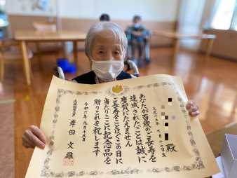 先日100歳を迎えられた方へ内閣総理大臣から記念品が贈呈されました!