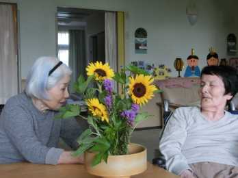 趣味の生け花をされる時も、生け花をされていない方に作品を近づけて