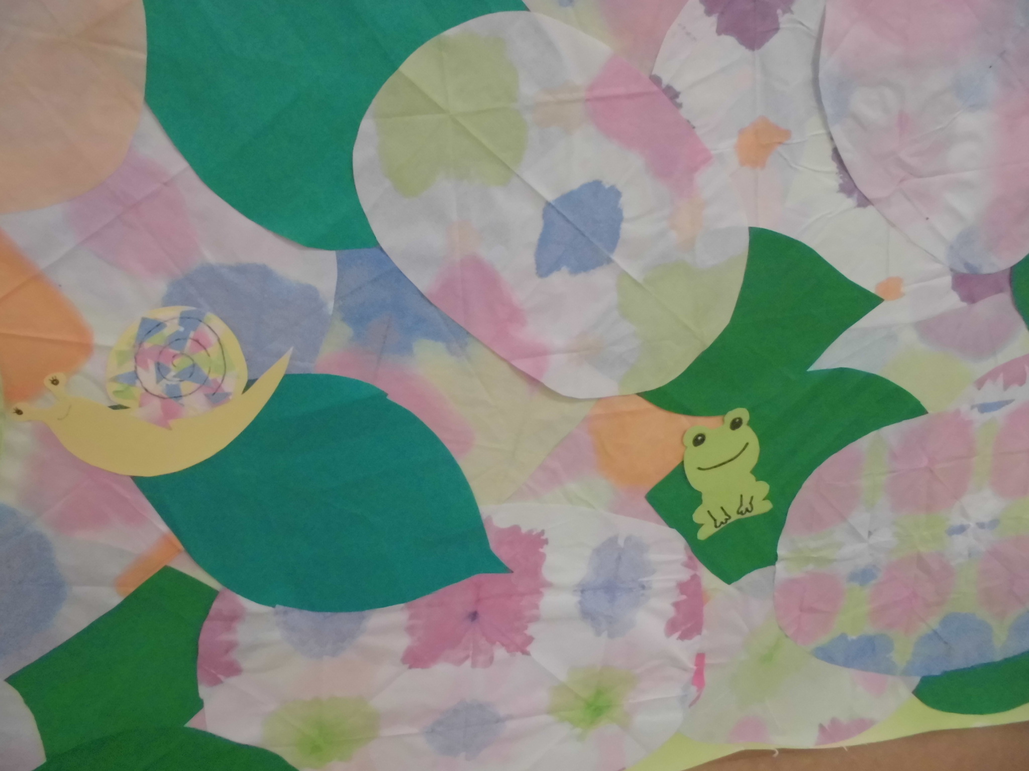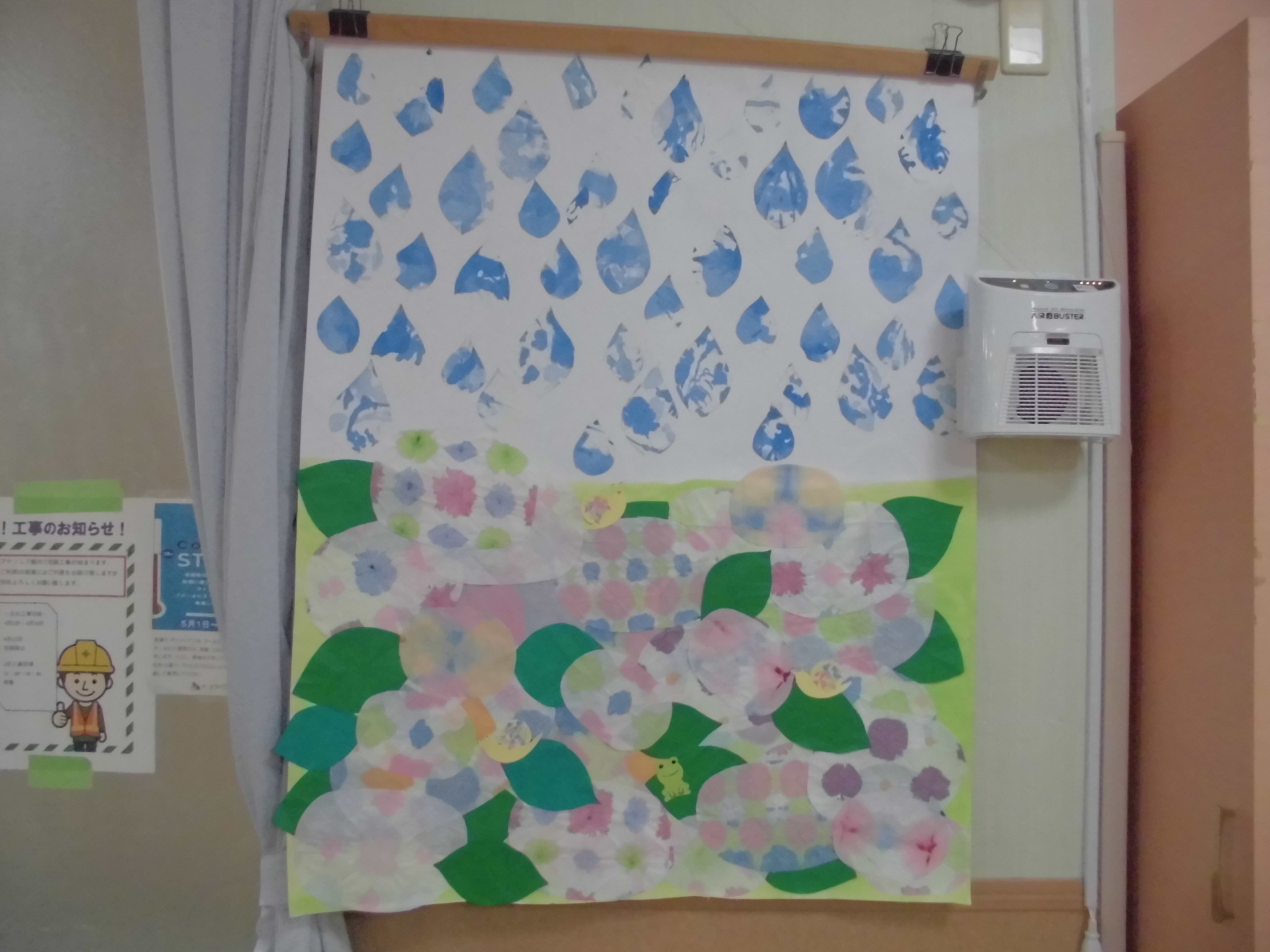 デイケアでは「アジサイ」の壁画づくりをしました。