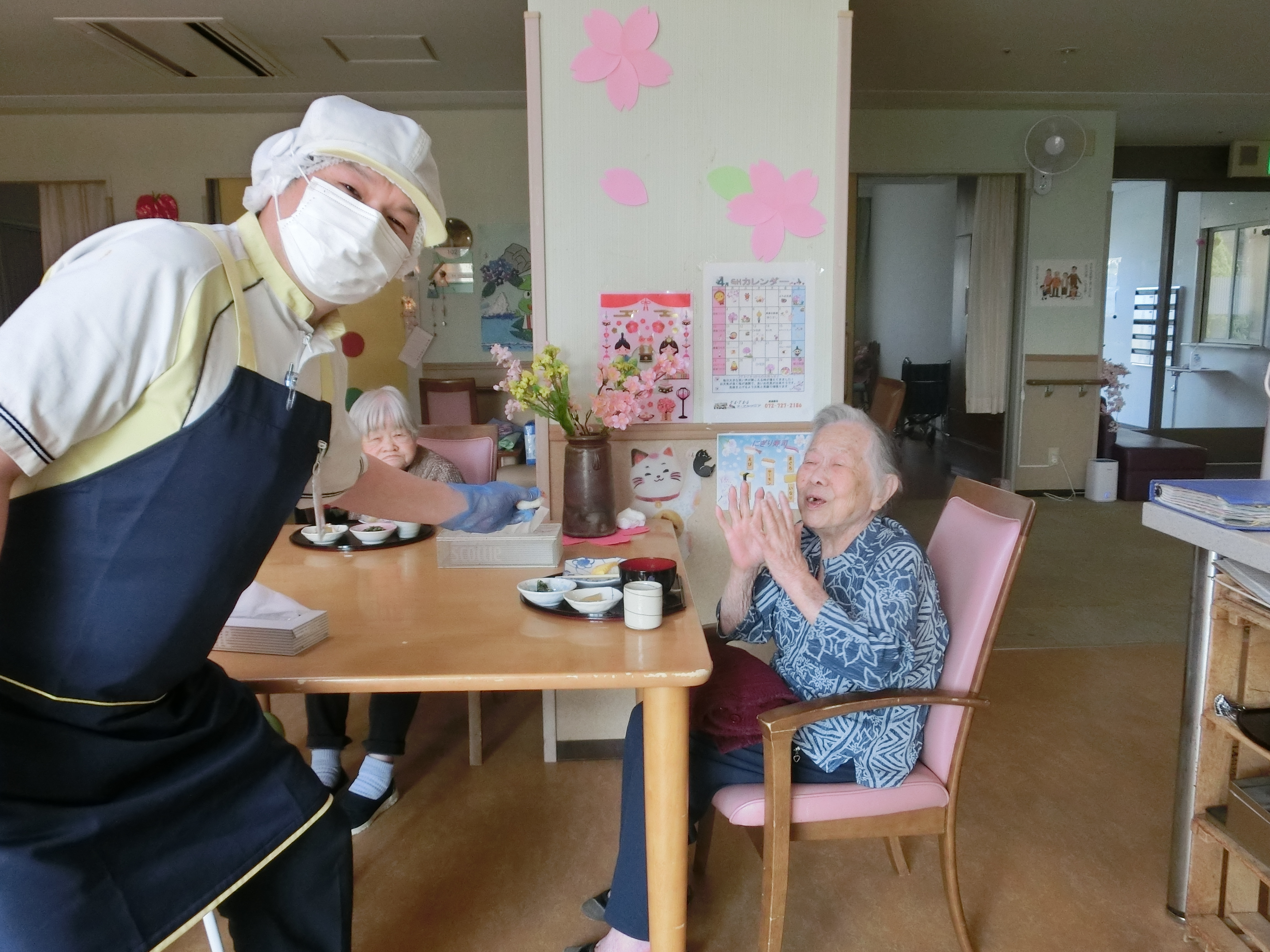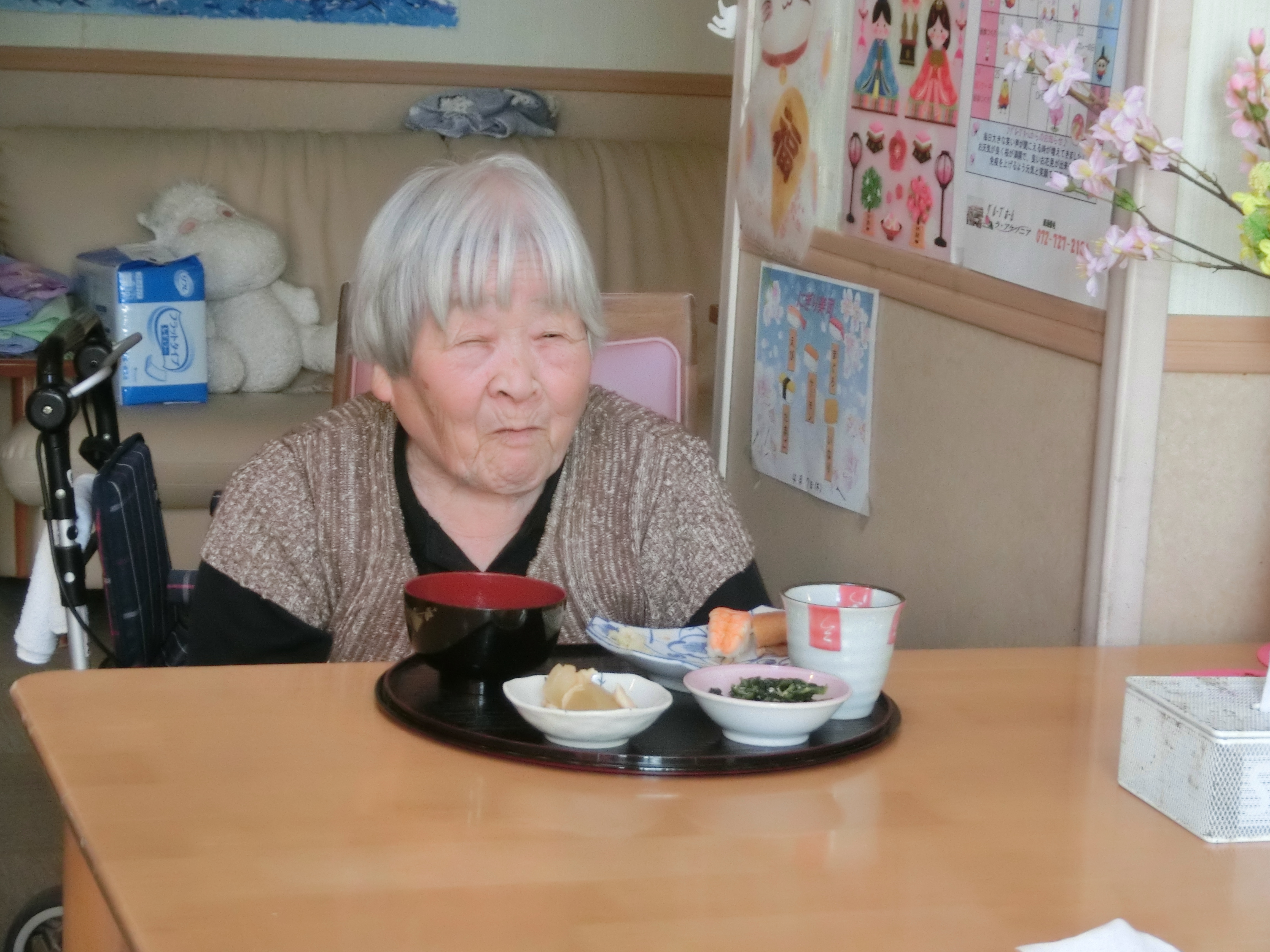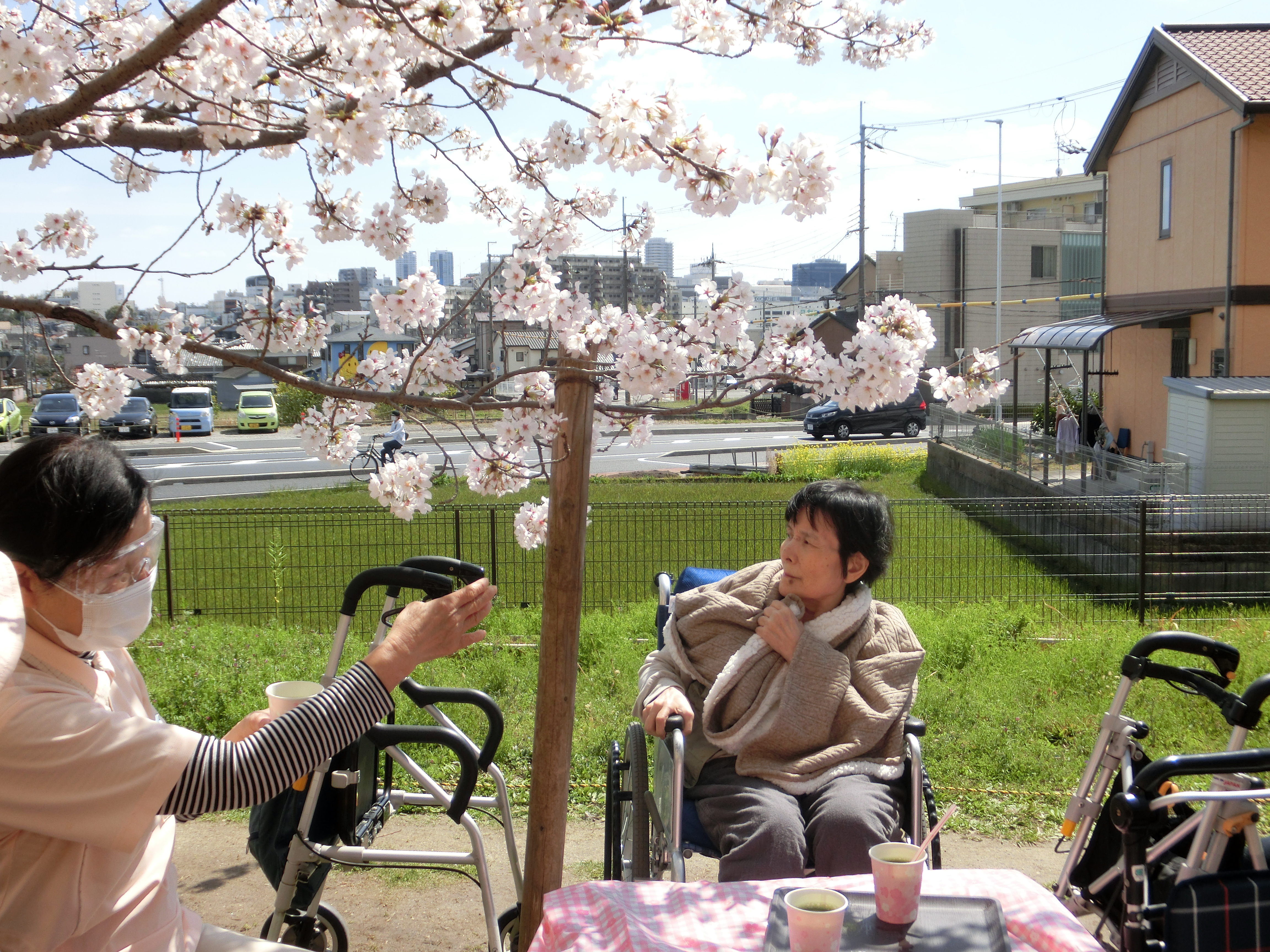 今年も施設のお庭のお花で「ミニお花見」をさせて頂きました。