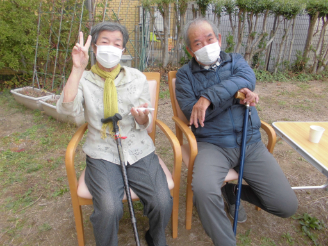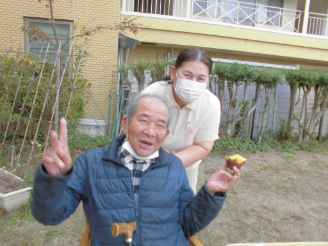 アケソニアデイケアでは、お庭で焼いた焼き芋をお庭に出て楽しみました。
