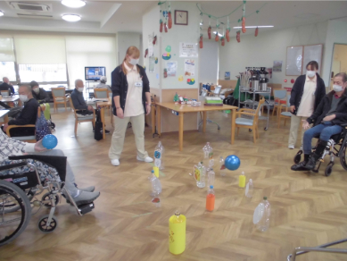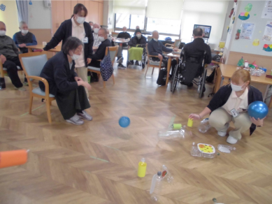 やわらかいボールを投げてストライクめざし皆様盛り上がっておられました。