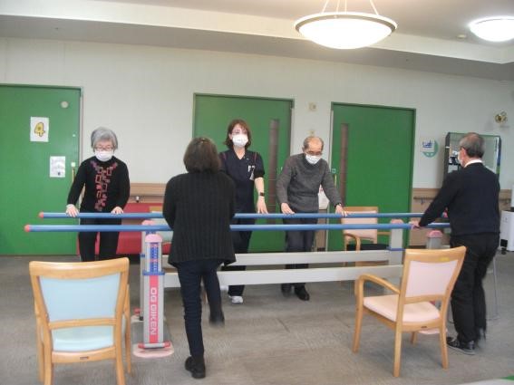 リハビリのご様子で、理学療法士による平行棒体操です☺