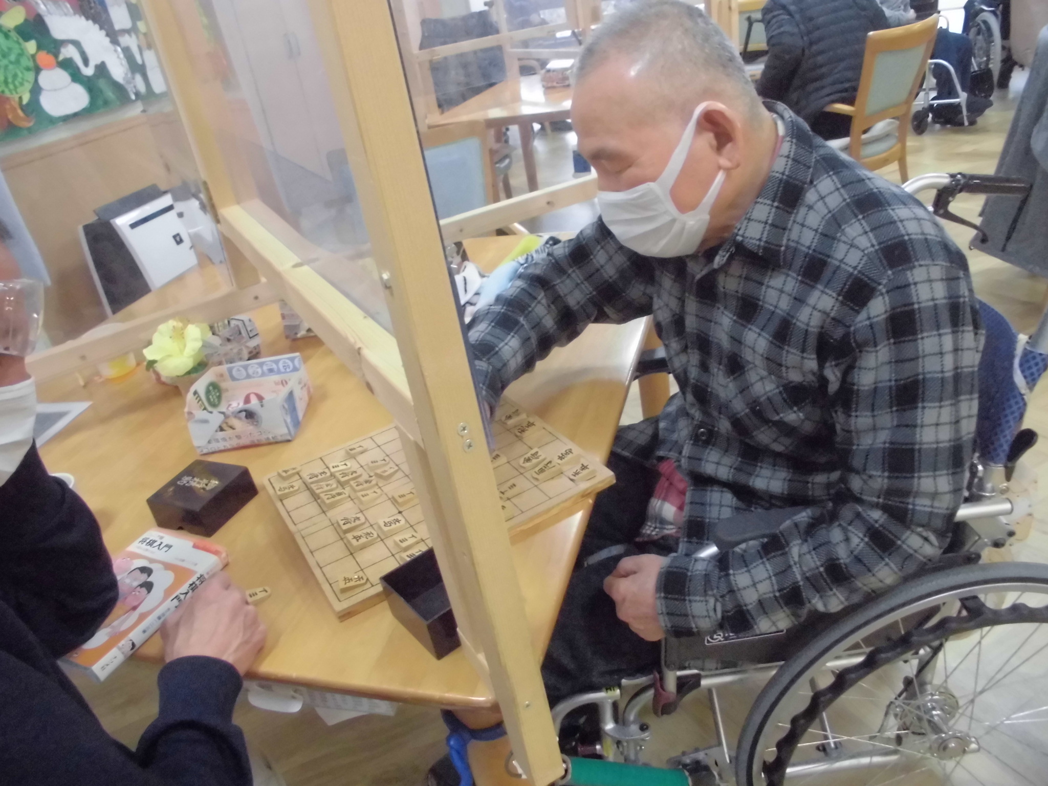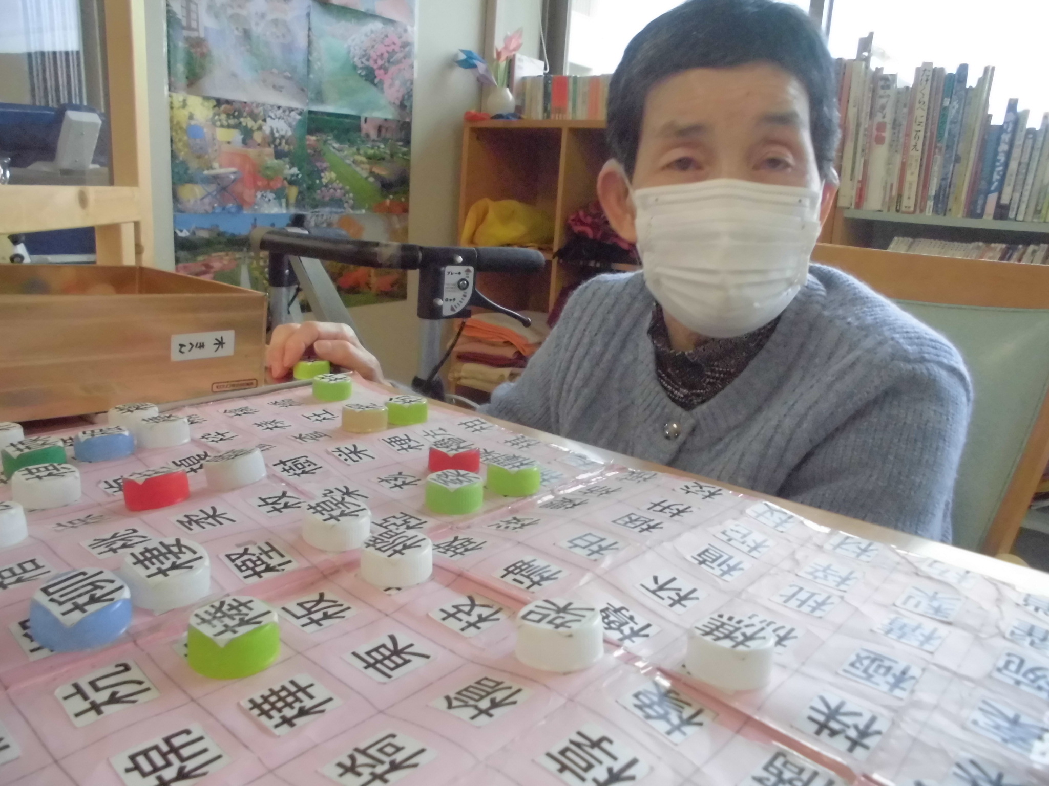 スタッフお手製の漢字パズルや将棋、トランプ、壁画作成などの手作業、