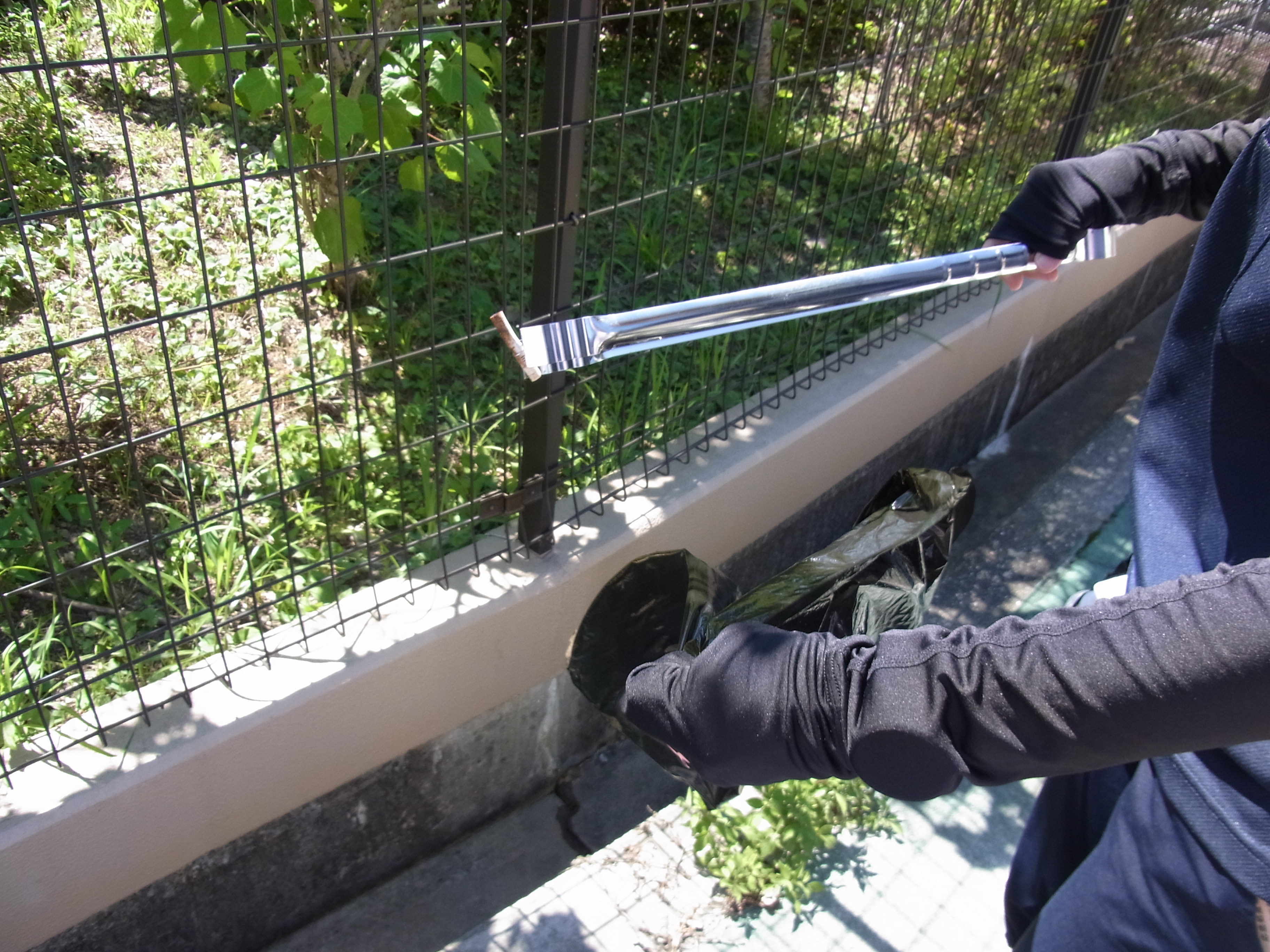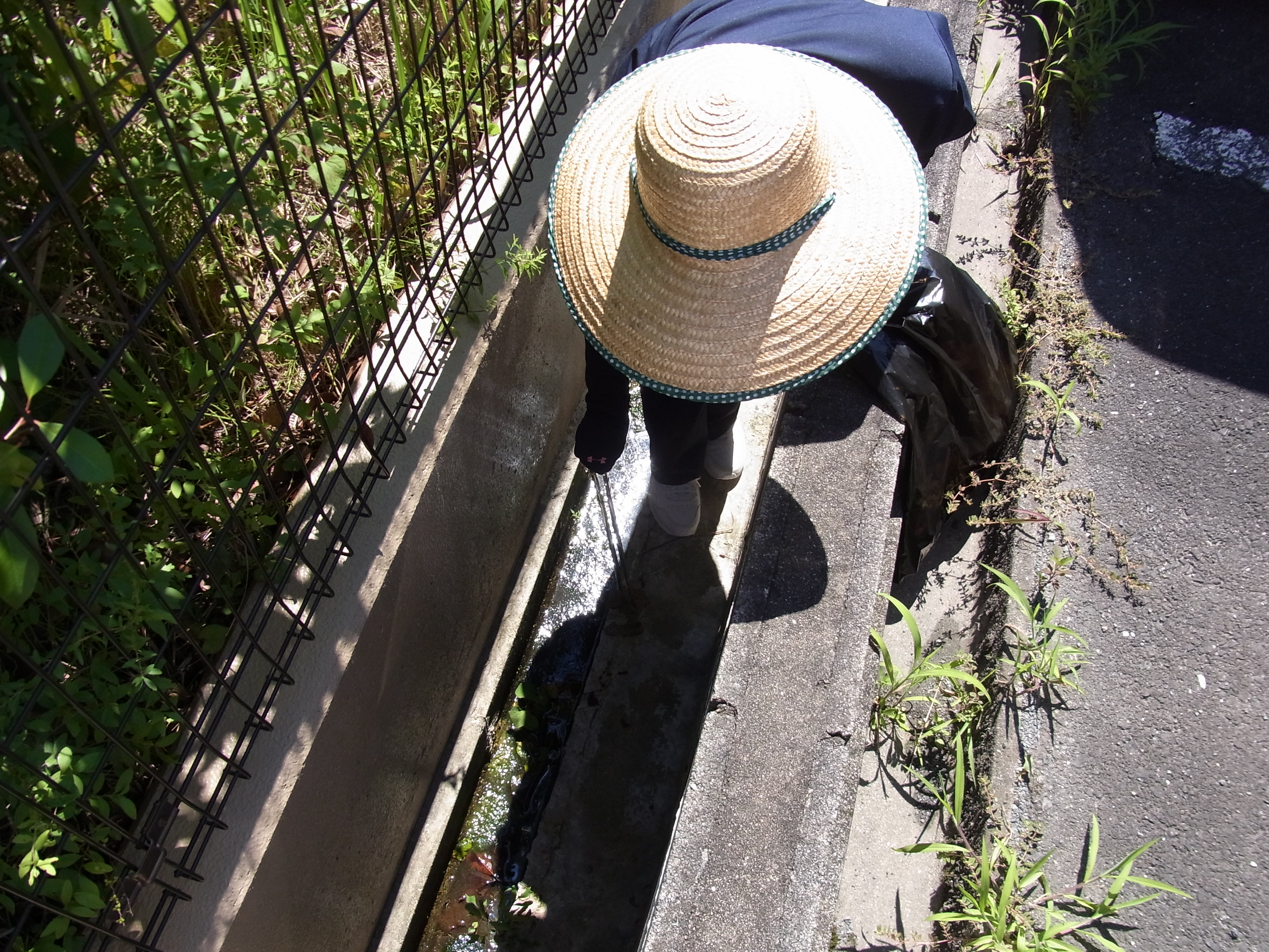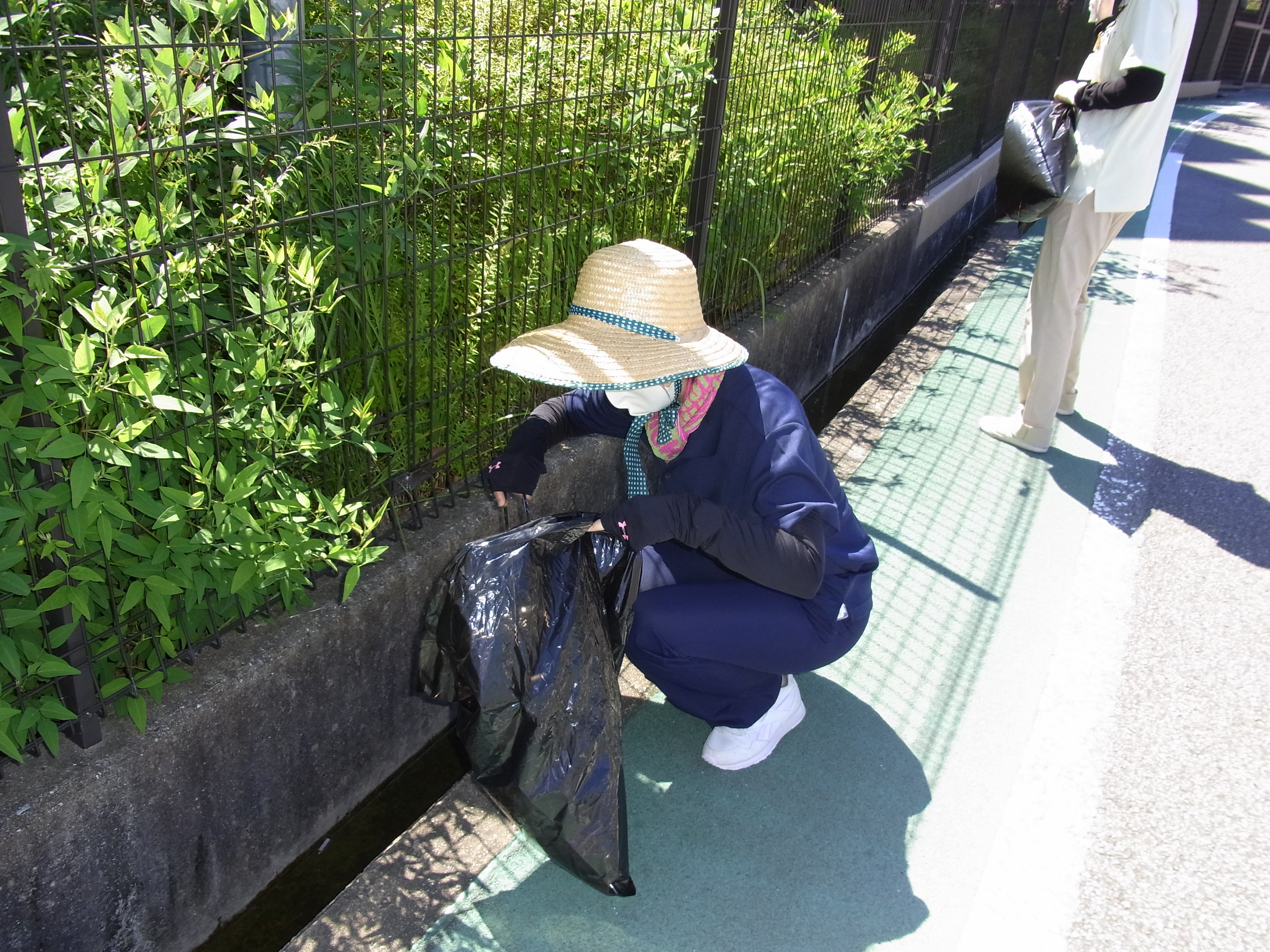 暑い日でしたので日除けを万全に、施設周辺のごみを拾いました?
