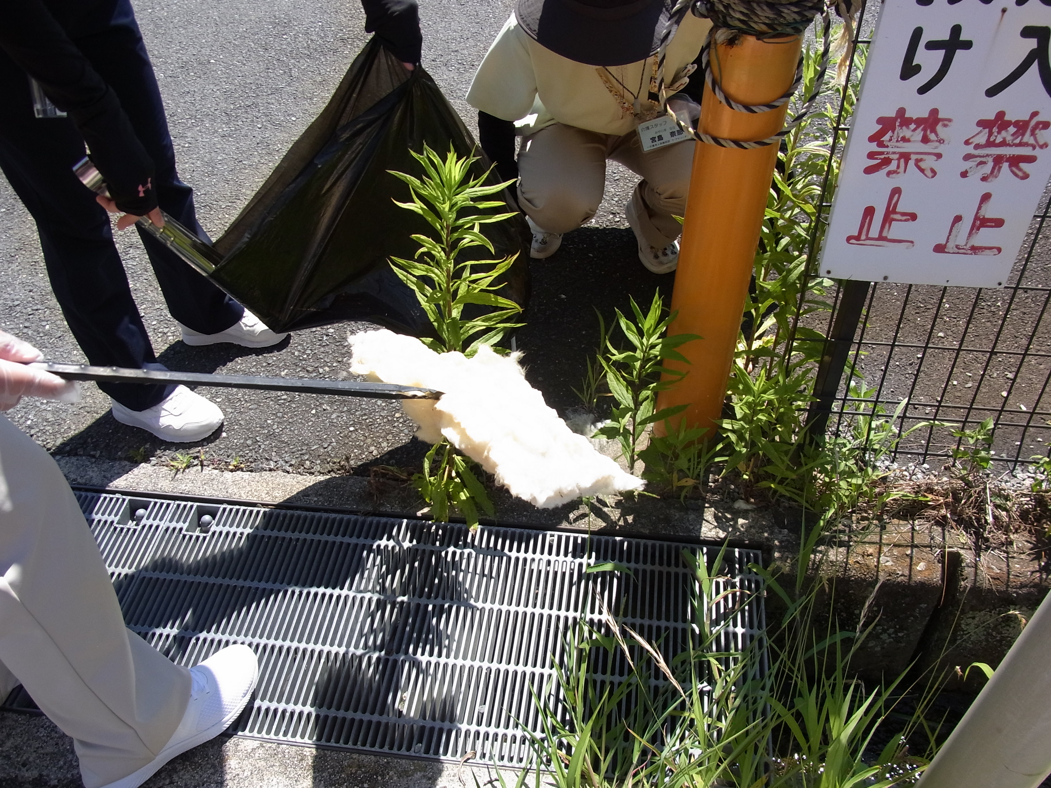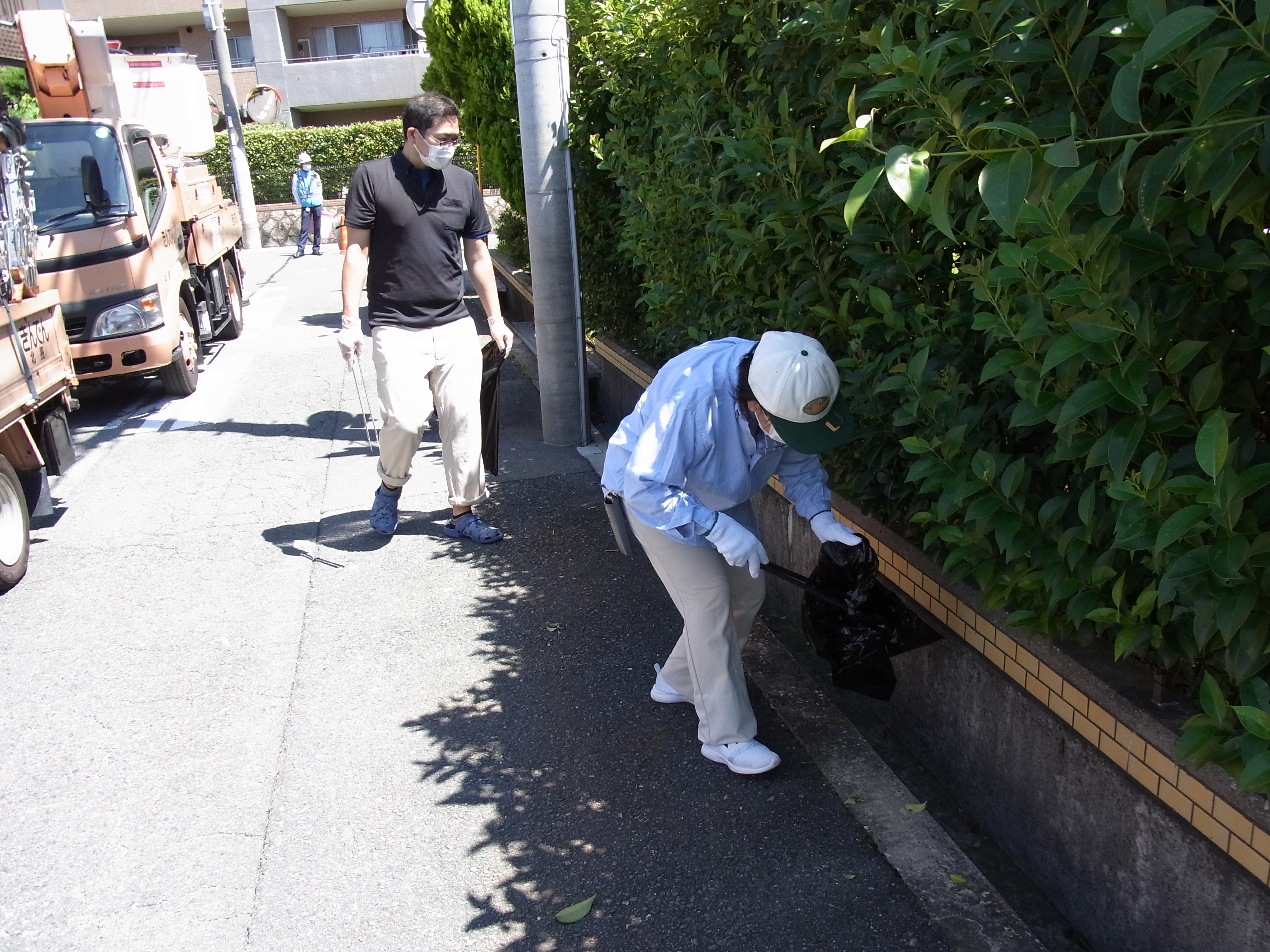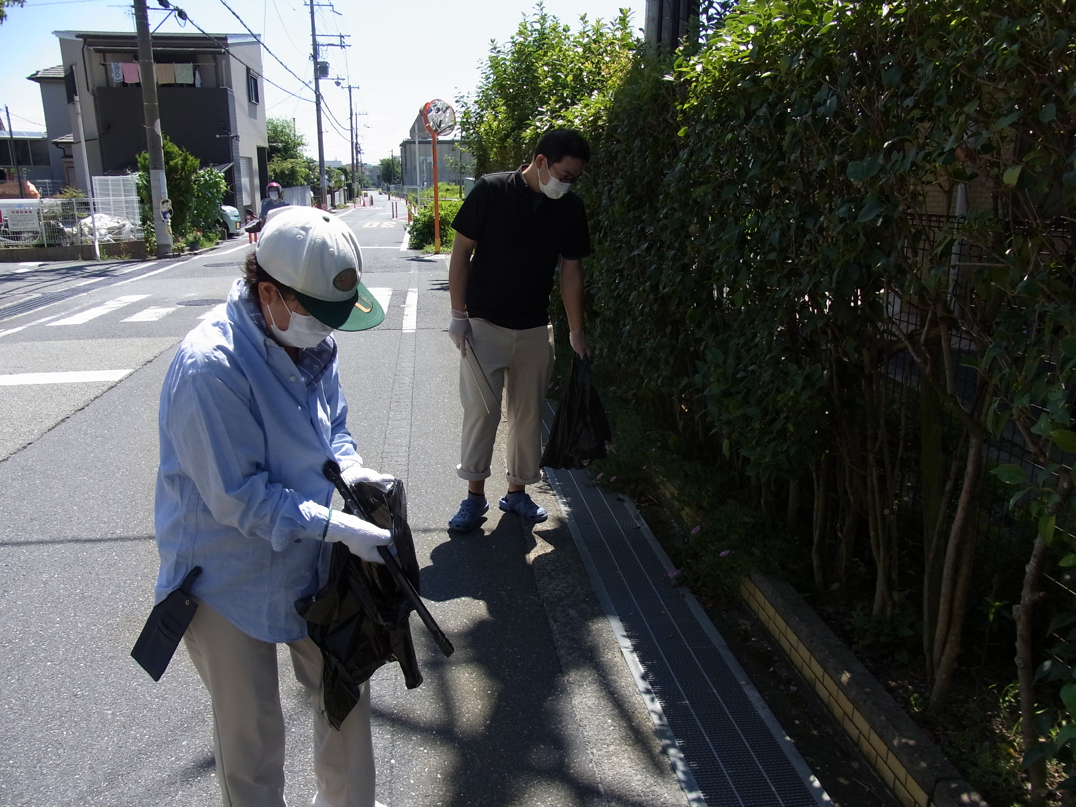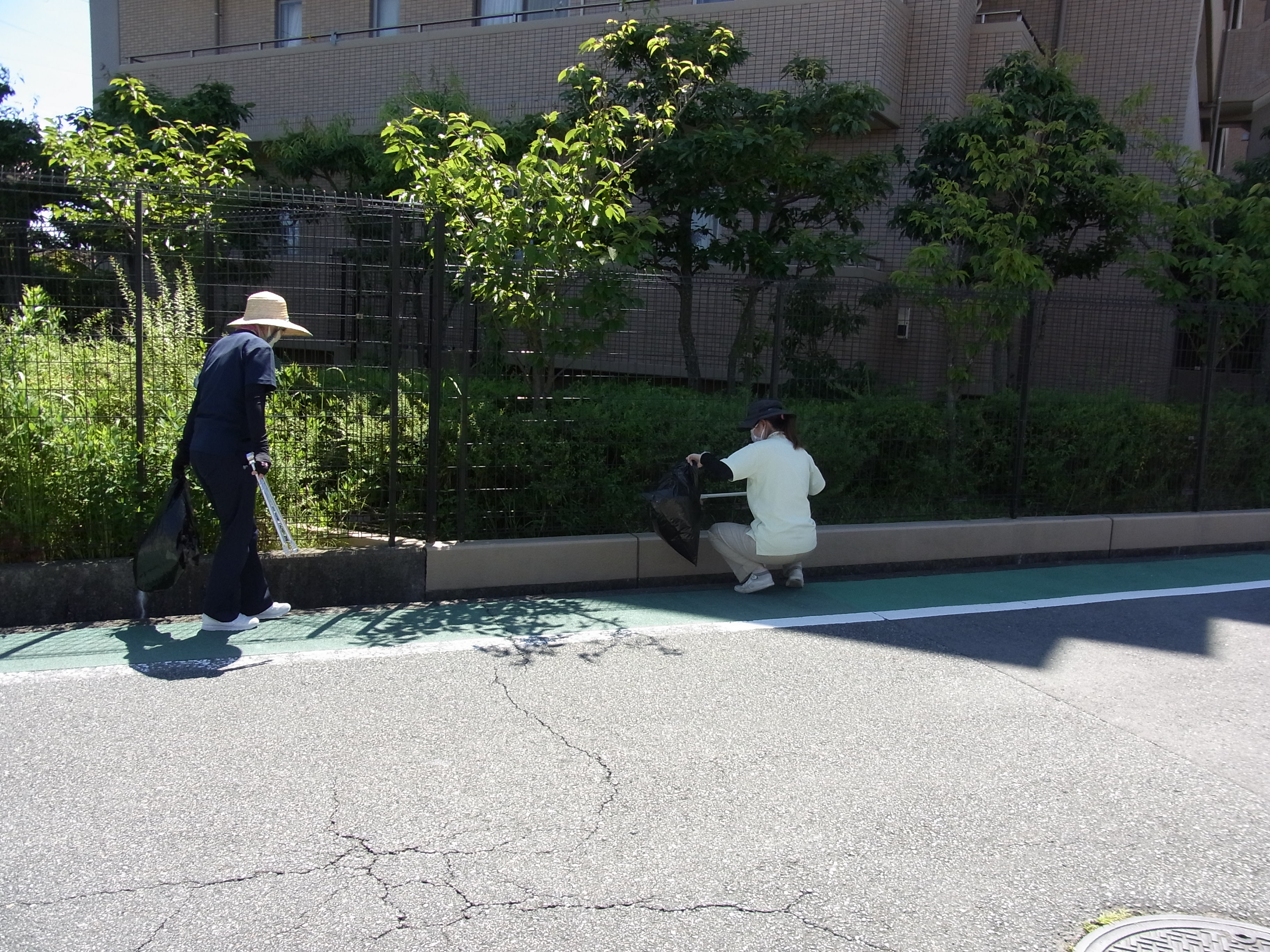暑い日でしたので日除けを万全に、施設周辺のごみを拾いました?