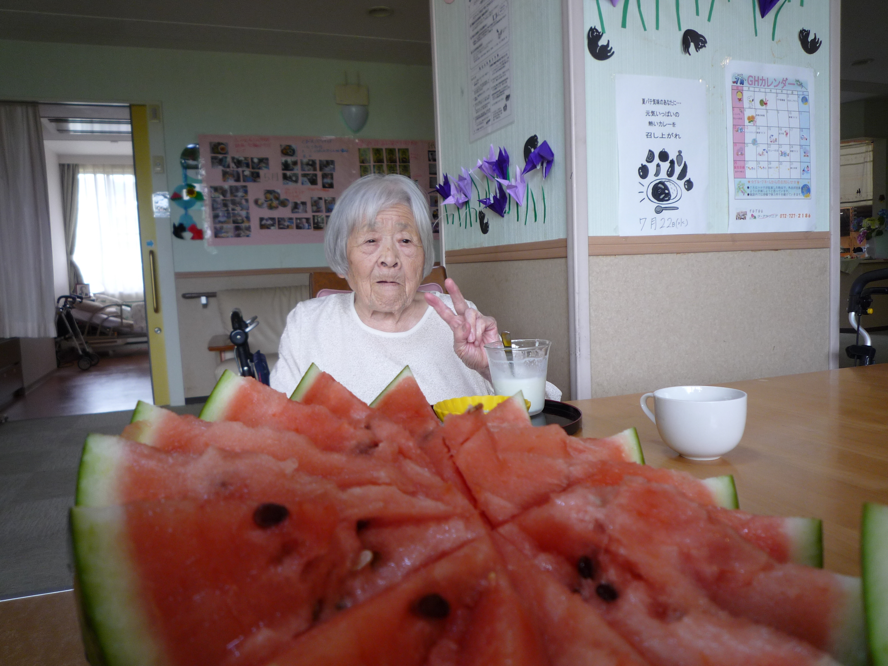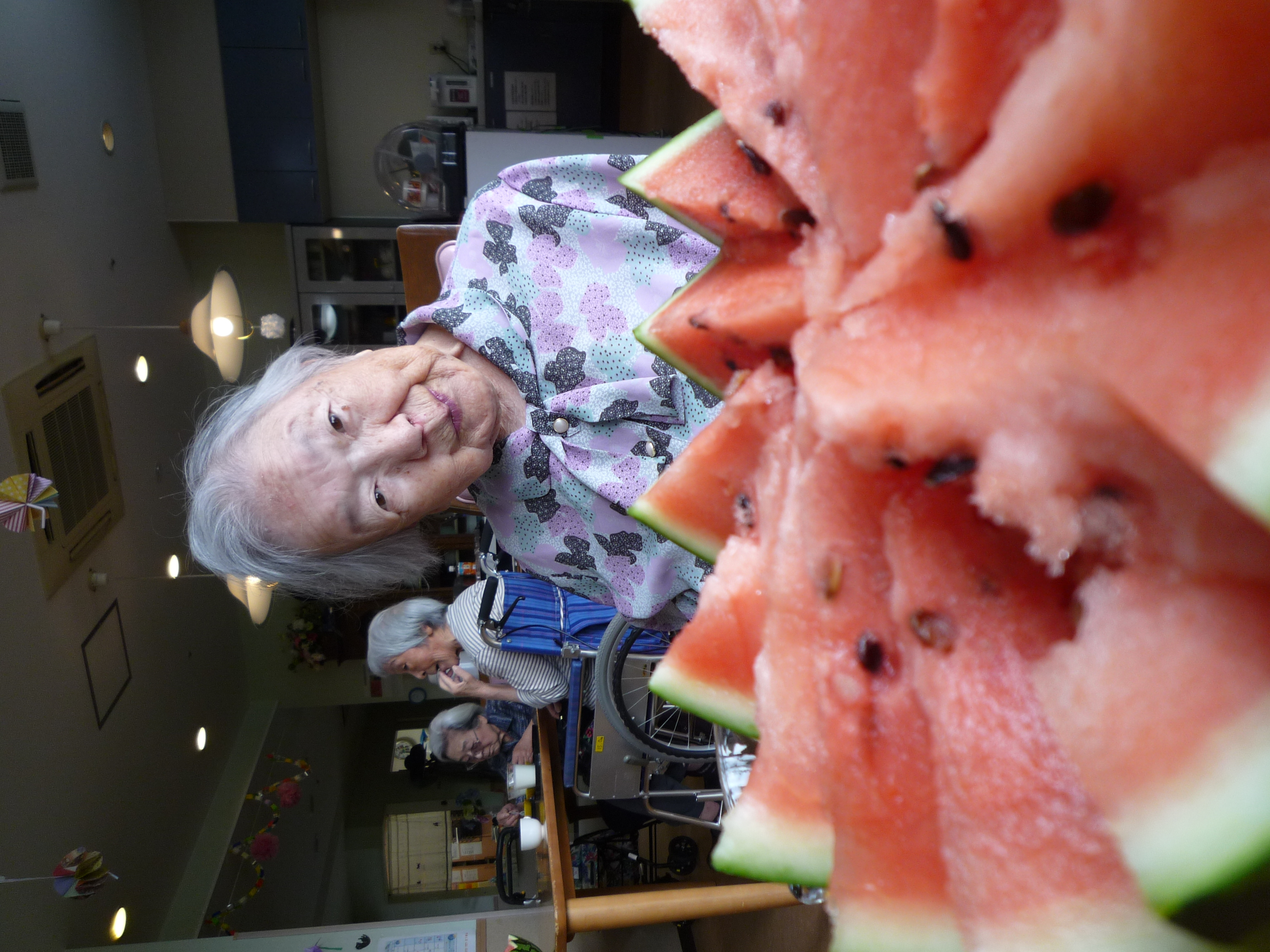 スイカをたたき割ったあとは皆でおいしく頂きました。???