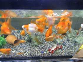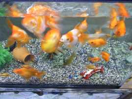 去年産まれた金魚の赤ちゃんもすくすく育ち、少し大きめの金魚は大きな水槽へ