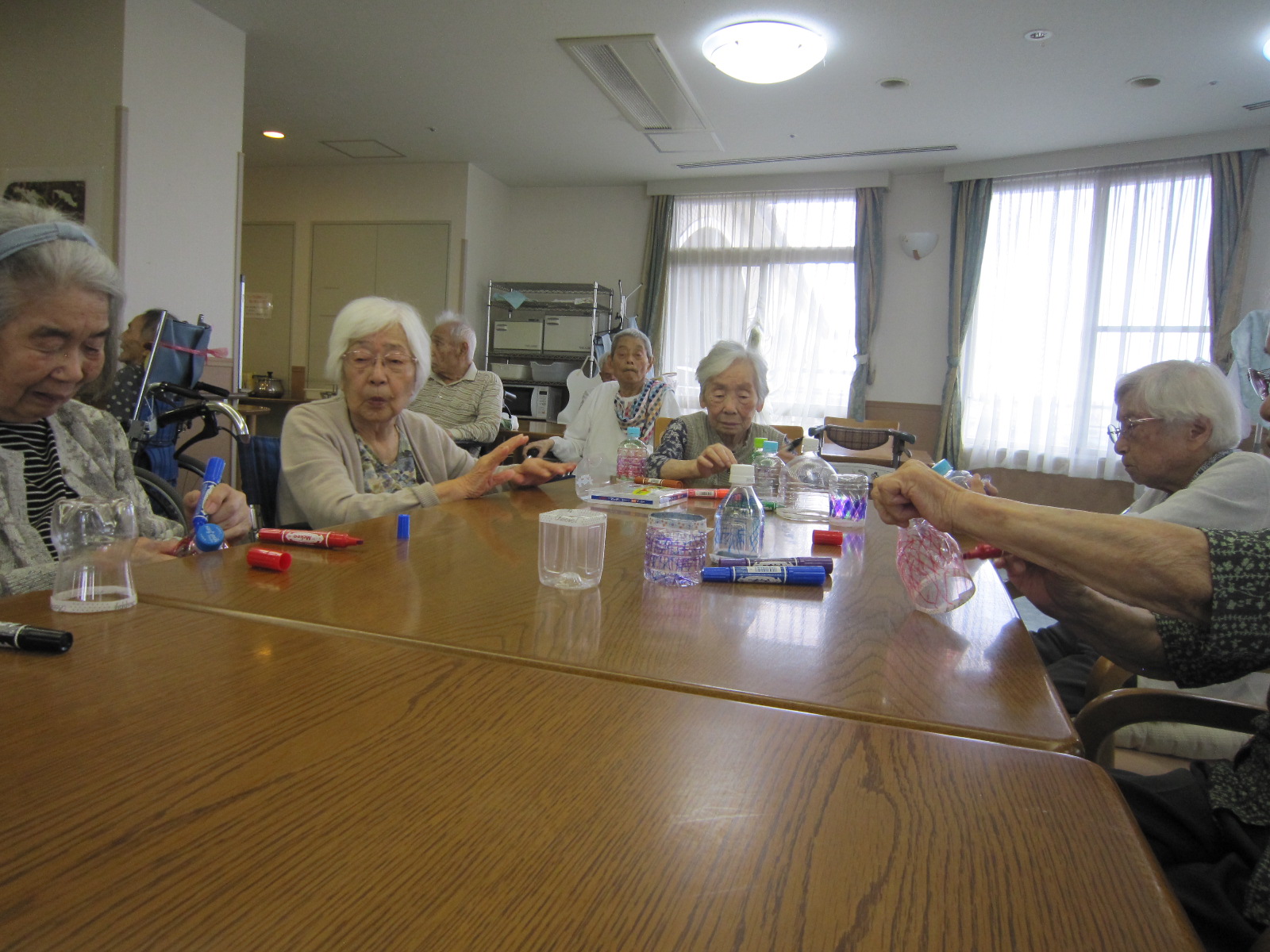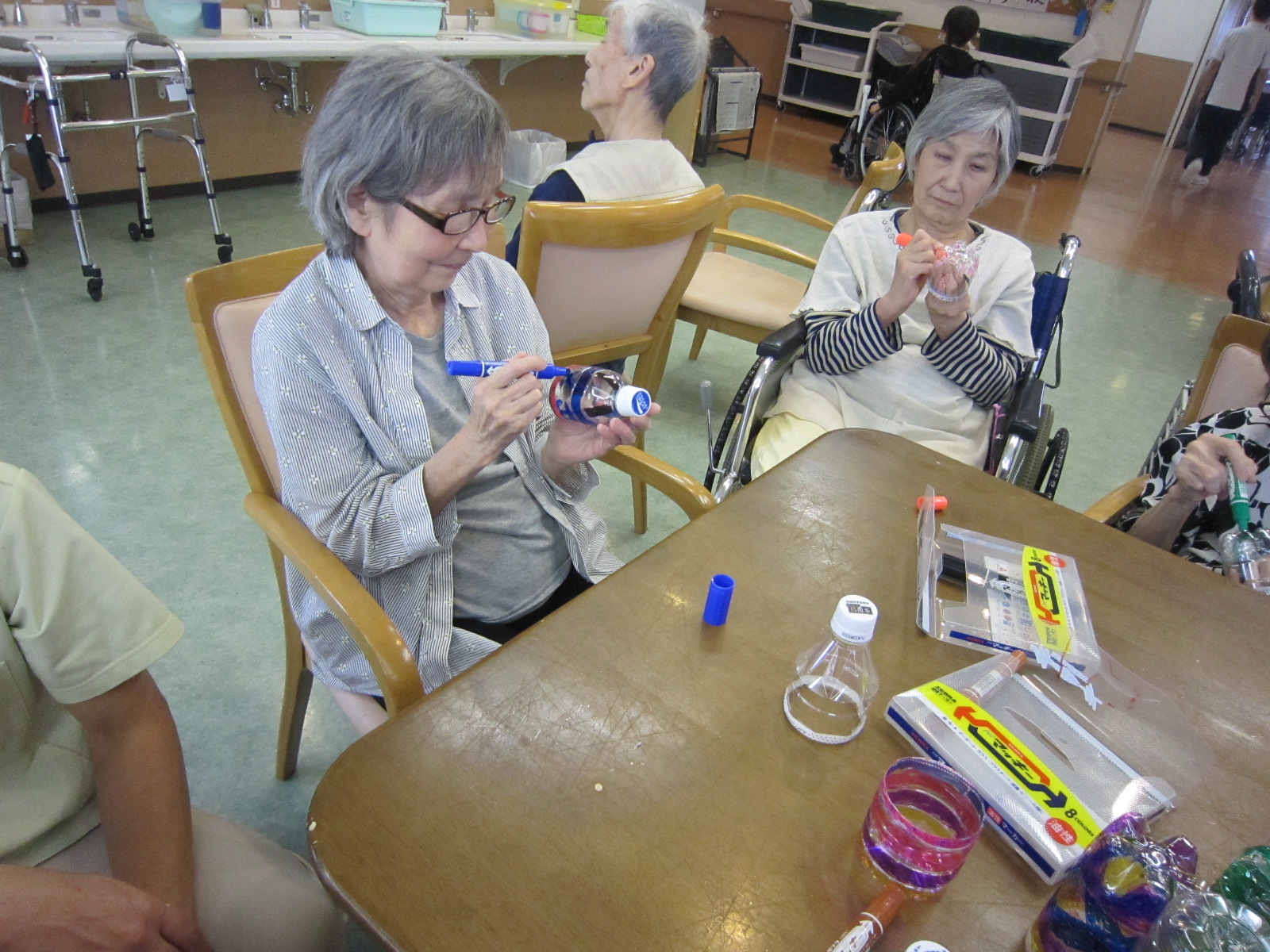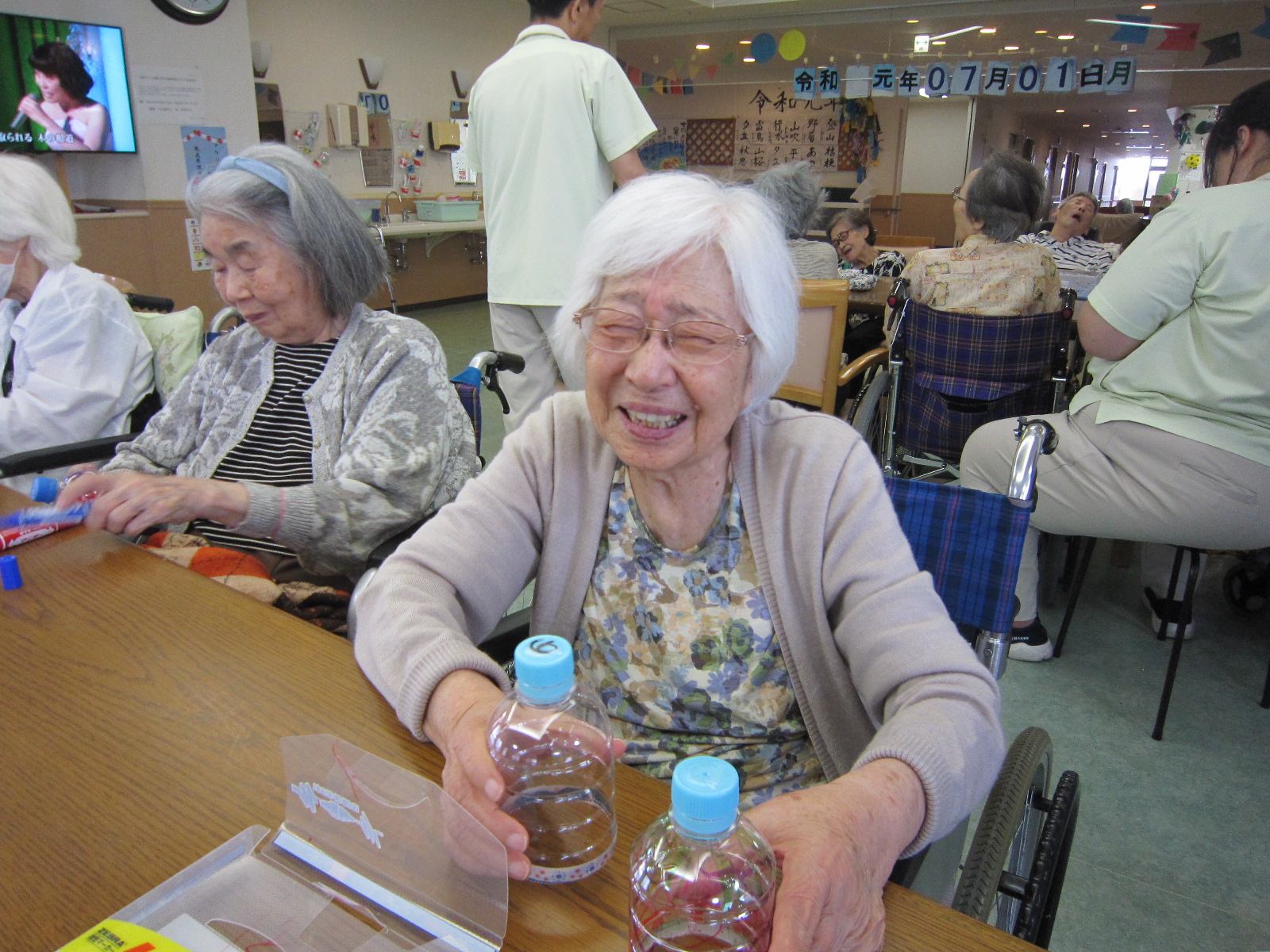 昨日ですが、老健フロアにて、アケソニア祭りの飾りに必要である、ペットボトルを使って