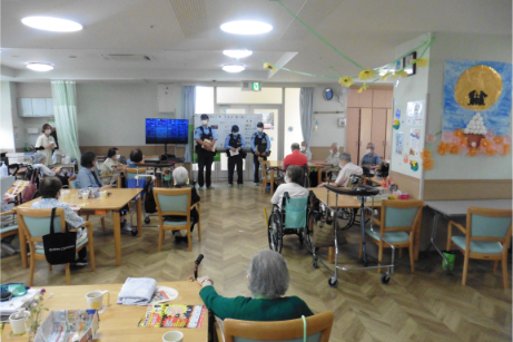 9月19日 デイケアに箕面警察の方が来てくださり、最近特に多発している特殊詐欺についての情報発信をされ、みなさん熱心に話を聞かれていました。