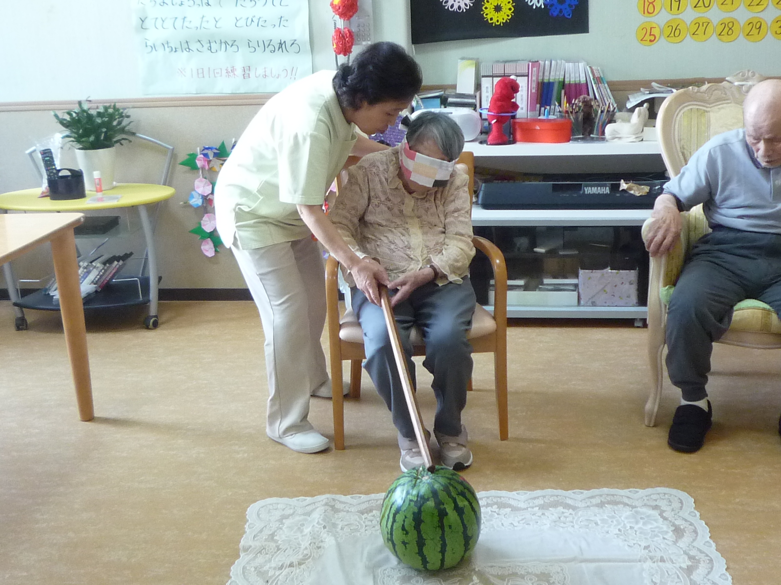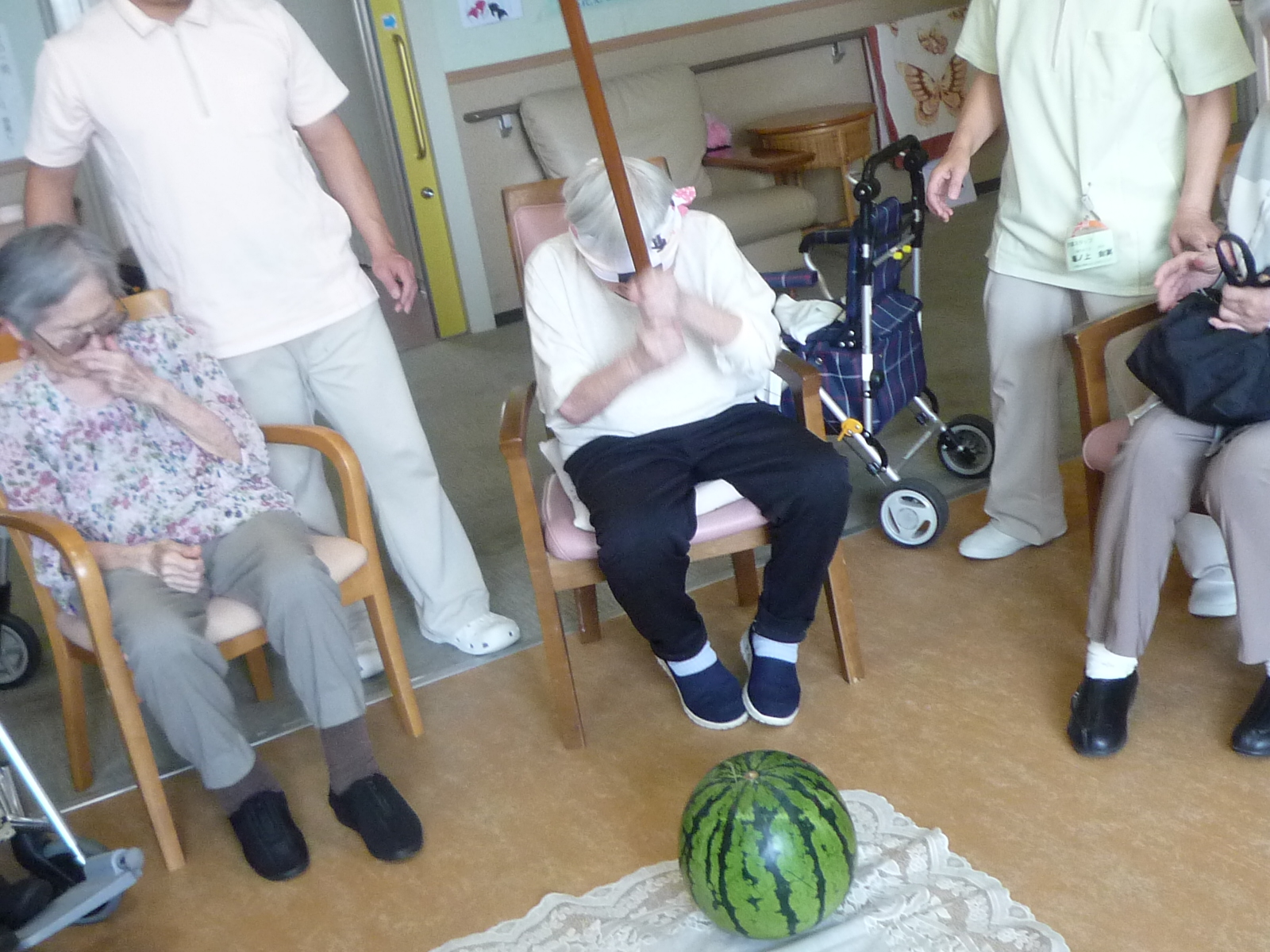 先日、スイカ割り?に挑戦しました?