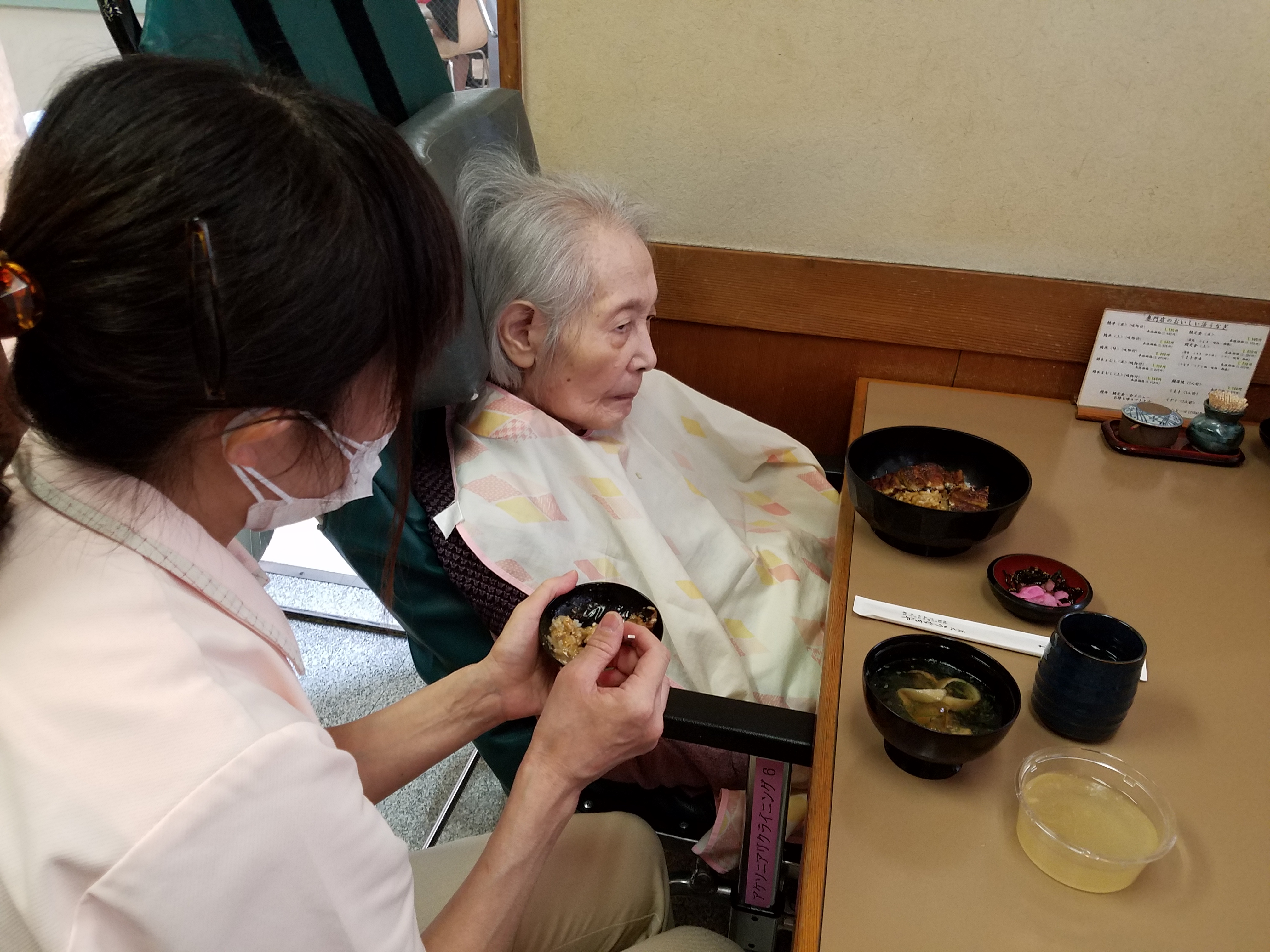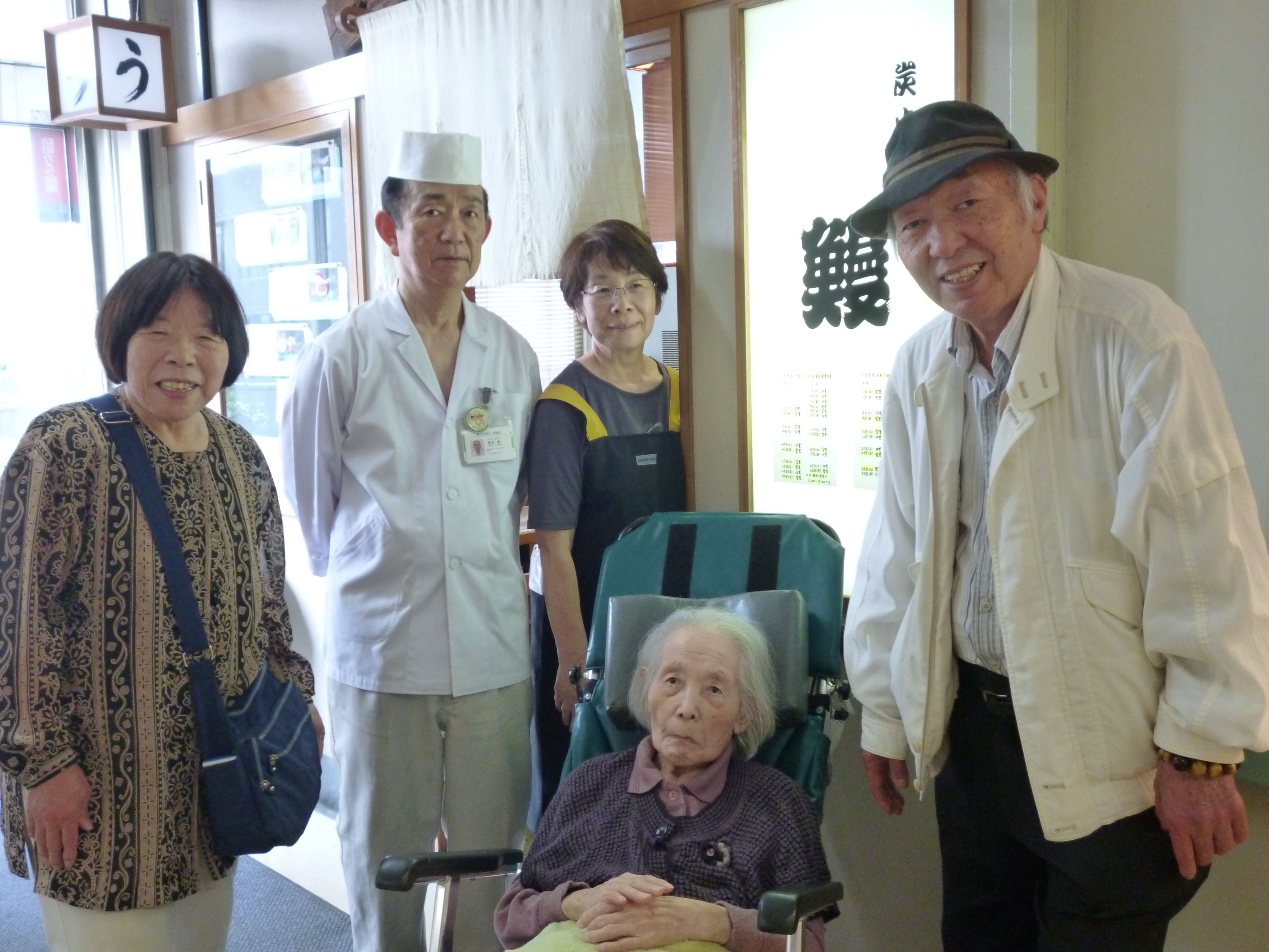 ご家族様には、出発前に施設へ来ていただき、施設の車で、鰻屋さんへ出発です?