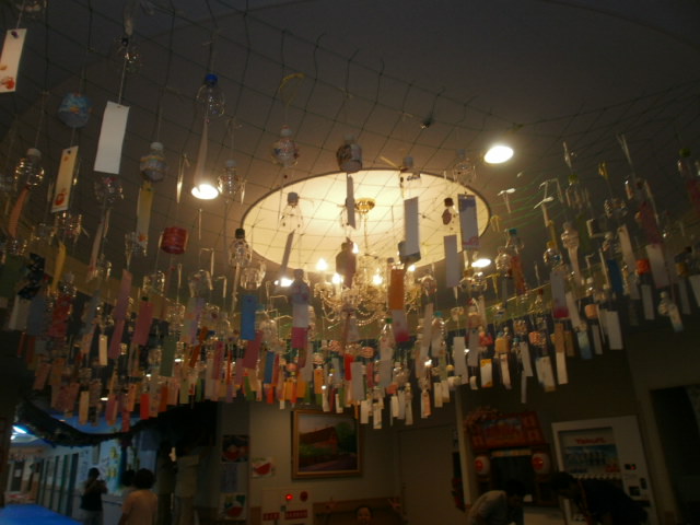 今年のアケソニアロビーは、手作りの「風鈴?」が圧巻で、