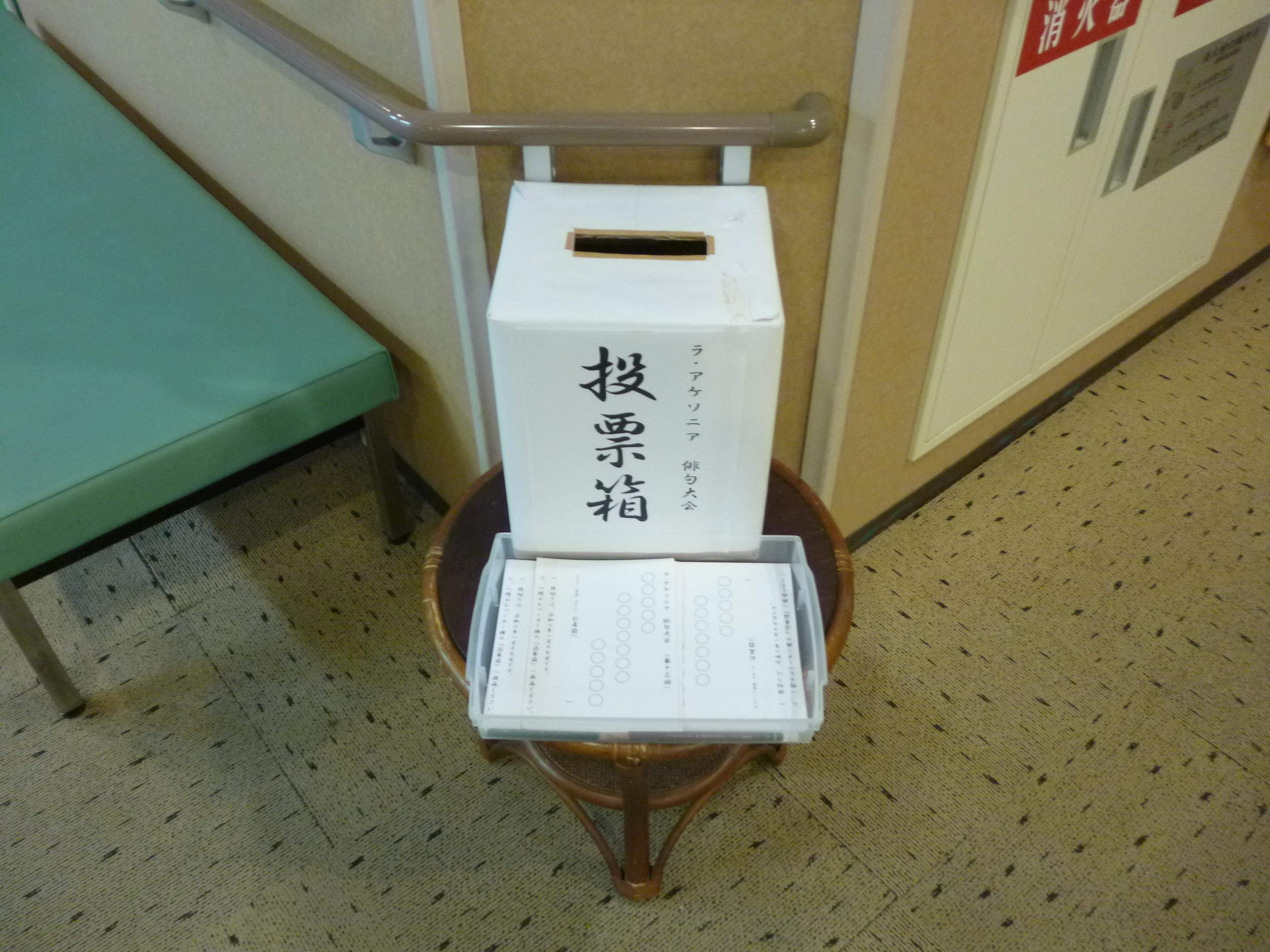 投票用紙と投票BOXは、アケソニアロビー1階のエレベーター前に