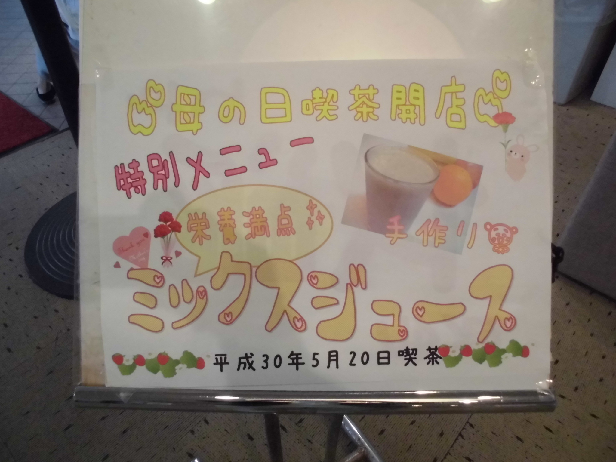 今回の母の日喫茶特別メニューは「ミックスジュース」