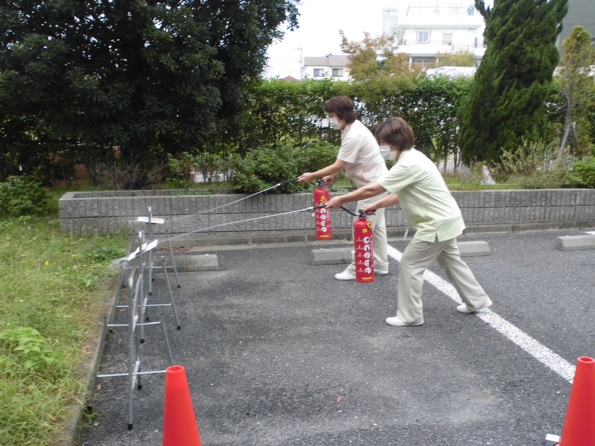 模擬の?に向かって消火する訓練をしました(*’ω’*)