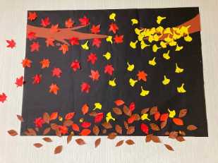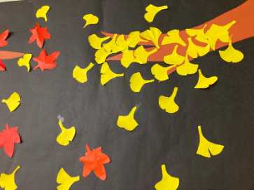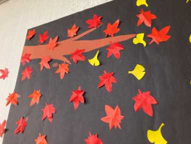もみじ、いちょう、枯れ葉などはさみで細かく作成して、