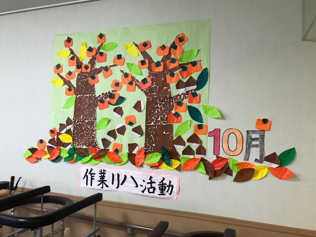 作業リハビリにより、ますます秋らしい壁画が作成されました。