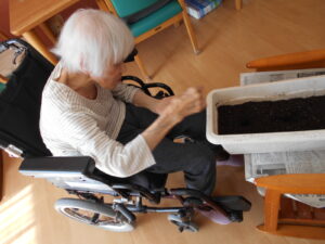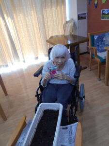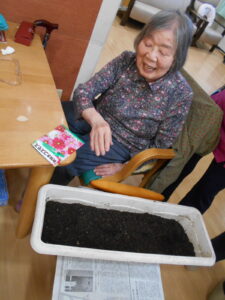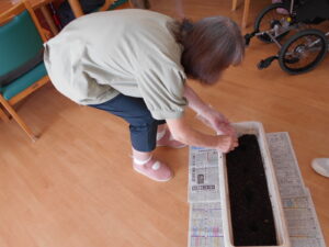 今度は、コスモスの花を咲かせる為、花壇に種を撒きました