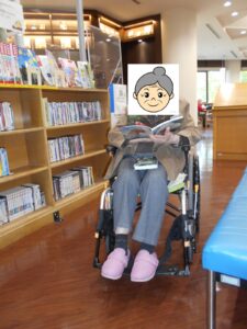 今日は近くの図書館へ皆さんが楽しんでいただける紙芝居と思い思いの本を借りに行ってきました。