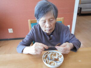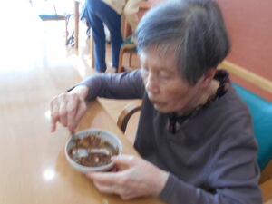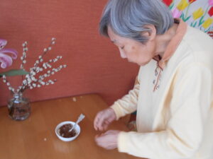 こんにちは、ロ・スカーロあおまだに2Fグループホームです。4月10日にはったい粉をゲスト様と一緒に作って召し上がって頂きました😄