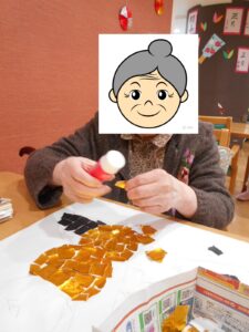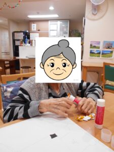 2Fグループホームでは2月の壁紙制作をゲスト様のみなさんで作っていただきました