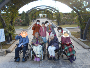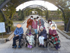 11月15日外出レクリエーションで万博記念公園のバラ園に行かれました。