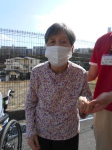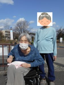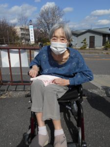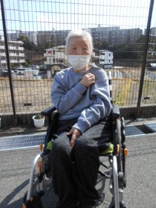 この日は、晴天で気候も暖かいので、施設前の駐車場で日向ぼっこ