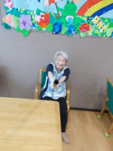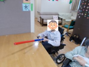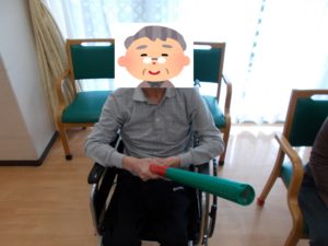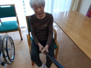 皆さん、こんにちは? 本日の体操レクリエーションは棒を使った運動を