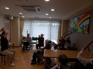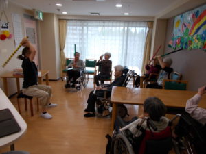 【3Fグループホーム】レクリエーション~棒を使った体操~