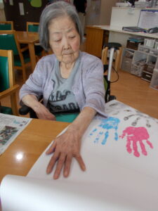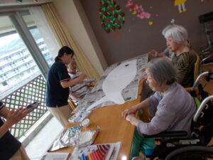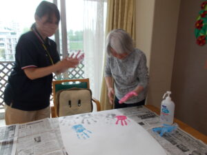 この日は、5月の壁紙製作をスタッフの人達と一緒に製作しました