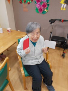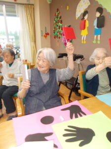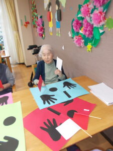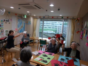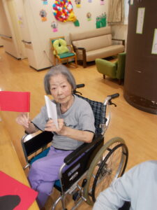 この日は、体操レクリエーションで、旗揚げ体操をゲスト様皆さんで