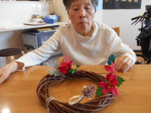 12月7日にクリスマスリースを行い、ごじしご自身で飾り付けを行いました。
