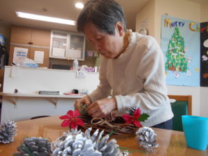 ロ・スカーロあおまだに2Fグループホームクリスマスリース作り