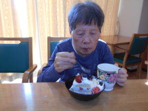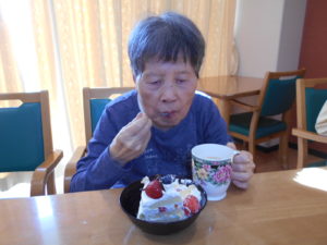 ケーキを持って来て下さいまして、とても美味しそうに召し上がられてました。?
