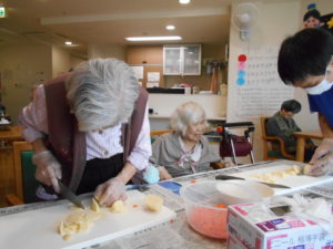 ゲスト様にも手伝ってもらいました。まずは、ジャガイモを切って