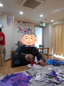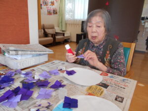 ゲスト様に6月の壁紙の製作を手伝って頂きました