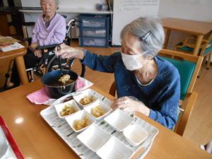 この日は、手作り昼食の日でした? ゲスト様に盛り付けを