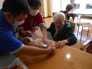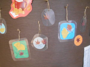 今日は、イチョウの葉を使って押し花をゲスト様皆さんに