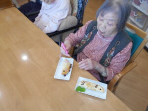 皆さん、こんにちはこの日は、おやつレクリエーションで
