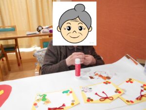 2Fグループホームでは正月に向けての壁紙をゲスト様と一緒に作りました