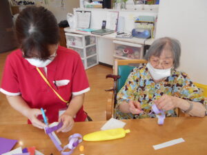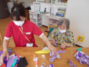 【2Fグループホーム】工作レクリエーション ぶどう作り