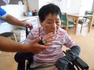 スタッフと一緒に工作レクリエーションで指輪をつくりました?